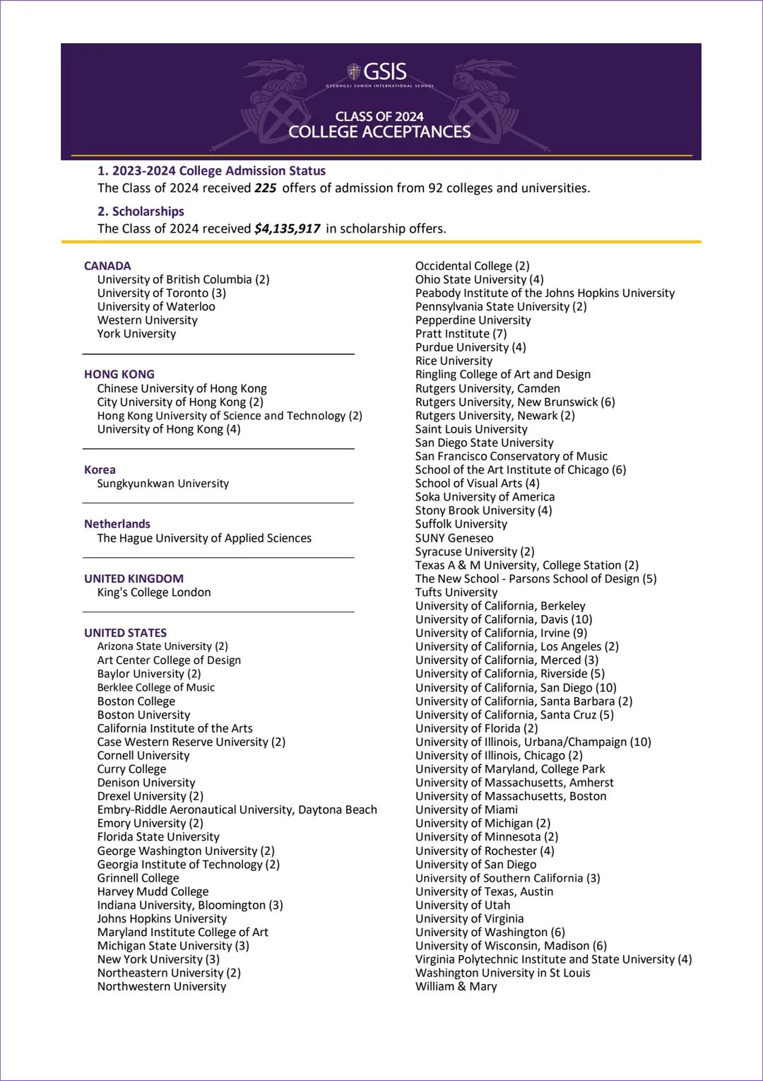 College Acceptances
